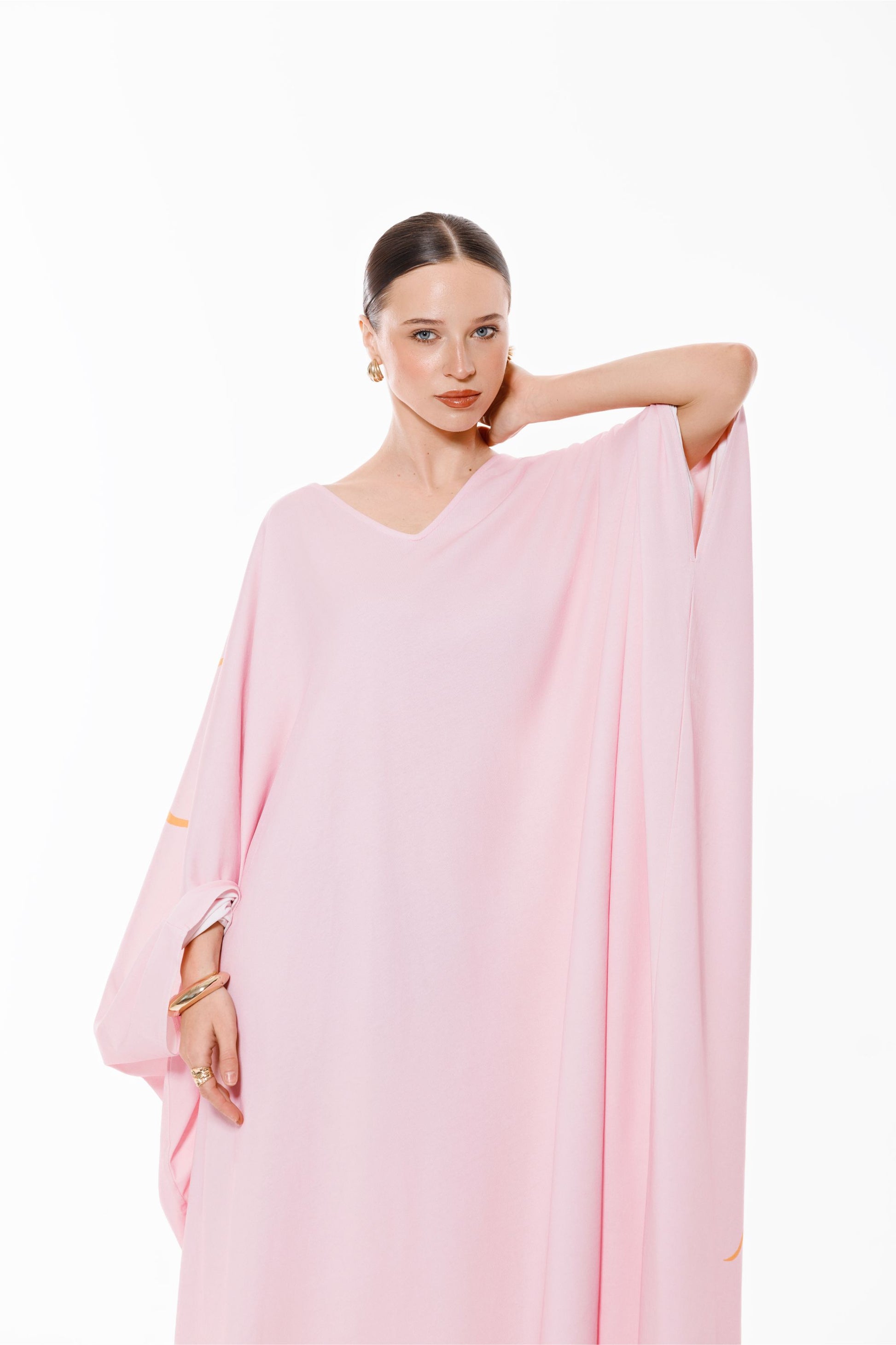 قفطان بقصّة مريحة مصنوع من القطن بنسبة 100%. يتميّز بفتحتين جانبيتين لراحة أكبر وسهولة في الحركة